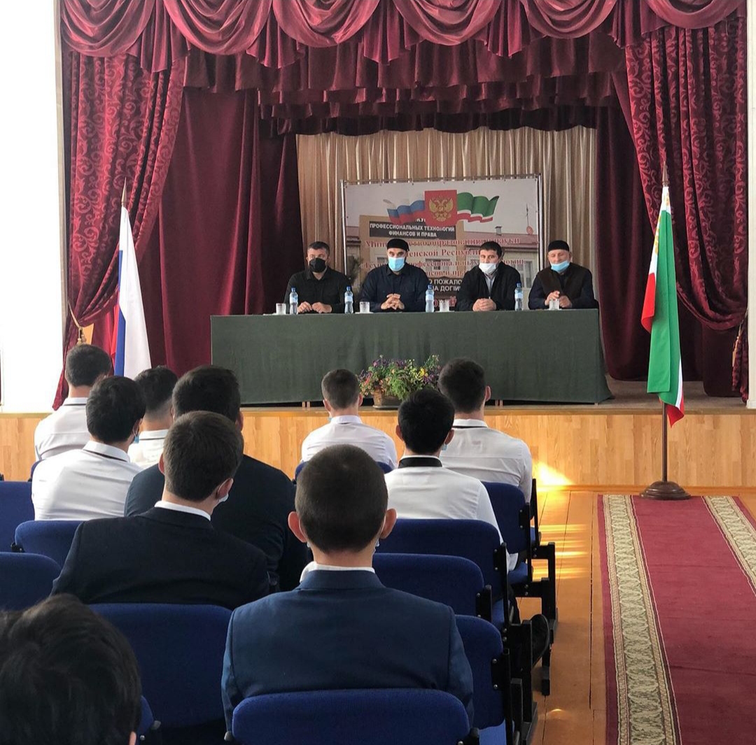 01.10.2020В актовом зале ГБПОУ «Государственный колледж профессиональных технологий и права» соблюдением рекомендации по профилактике новой короновирусной инфекции, прошло мероприятие по профилактике терроризма, экстремизма и наркомании. В мероприятии приняли участие: заместитель префекта Заводского района г.Грозный Рашитов Р.Х., кадий Заводского района Ахматов А.М. и главный специалист социального отдела префектуры Заводского района Дадаев А.Д.