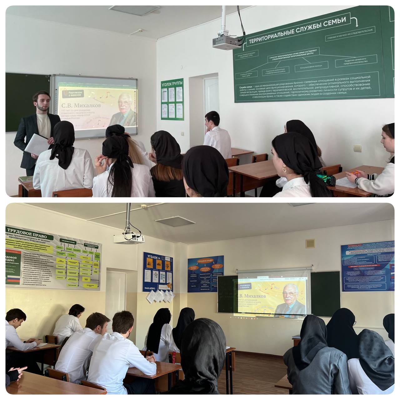 В Чеченском социально-правовом колледже, провели очередное занятие «Разговоры о важном» на тему: «110 лет со дня рождения советского писателя и поэта, автора слов гимна СССР и гимна России С.В. Михалкова».