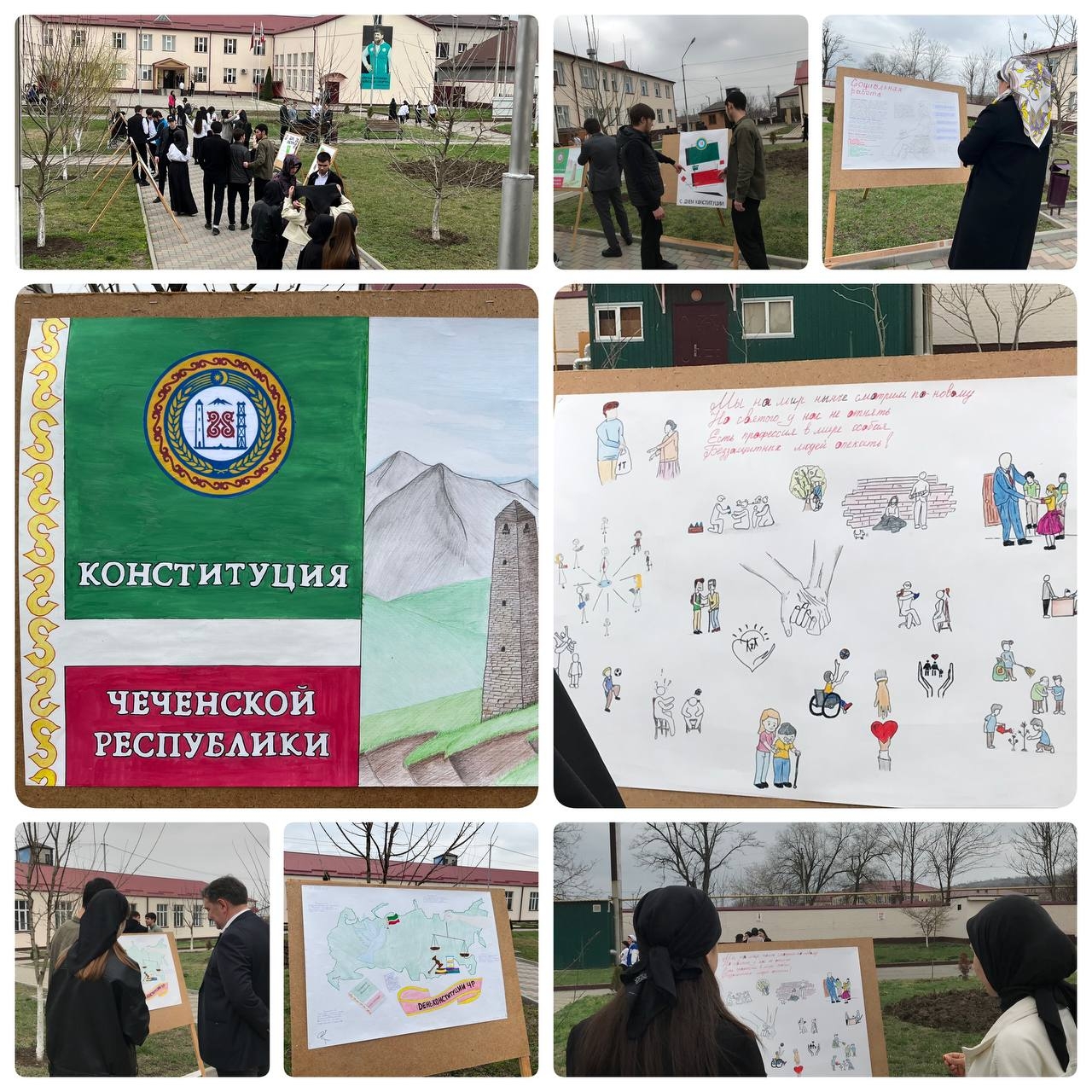 Первый день предметных недель начался с выставки стенгазет по социальной тематике и конкурса плакатов, приуроченных к празднованию Дня Конституции Чеченской республики.
