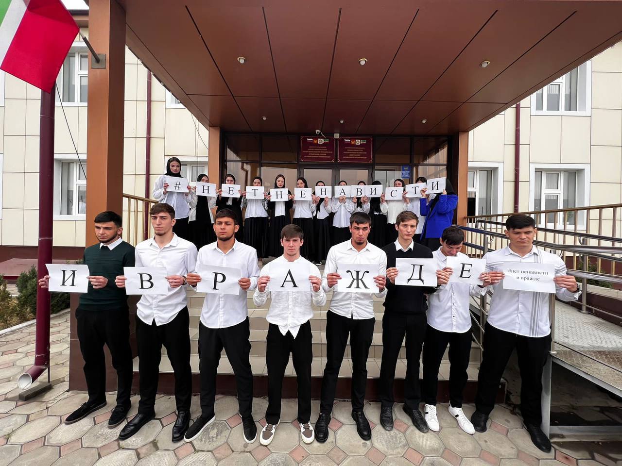 В рамках федерального оперативно- профилактического мероприятия “Нет ненависти и вражде”, в целях недопущения обострения межнациональных и межконфессиональных отношений с учетом событий ИЗРАИЛЬ - ПАЛЕСТИНА и недавних событий в Дагестане, а также в целях разъяснения важности и правомерности специальной операции проводимой ВС РФ на территории ЛНР и ДНР, сотрудниками ЦПЭ МВД по Чеченской Республике, совместно с отделом информации и общественных связей МВД по ЧР, а также с представителями Общественного совета при МВД по ЧР, проведен флешмоб со студентами ГБПОУ "Социально-правового колледжа” с хэштегом #нетненавистиивражде. На мероприятии приняли участие 25 человек.