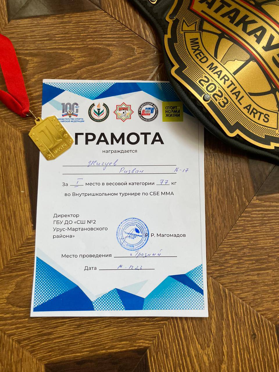 Наш студент Джигуев Ризван занял первое место в внутришкольном турнире по СБЕ ММА.Дала аьтто бойла,Дала т1аьхе беркате йойла!????