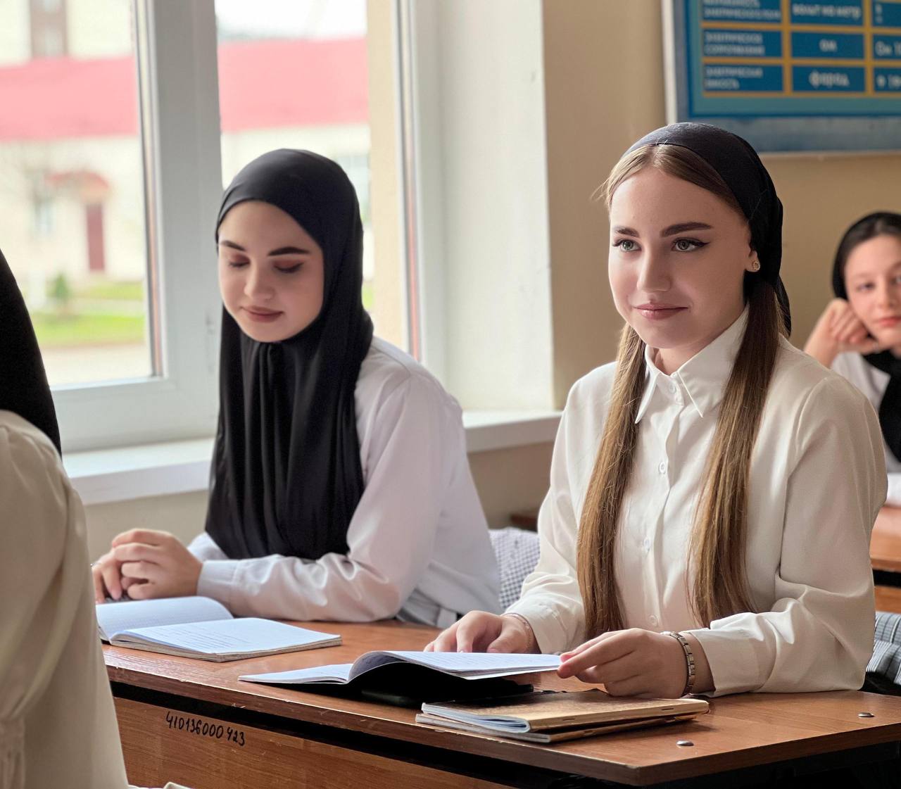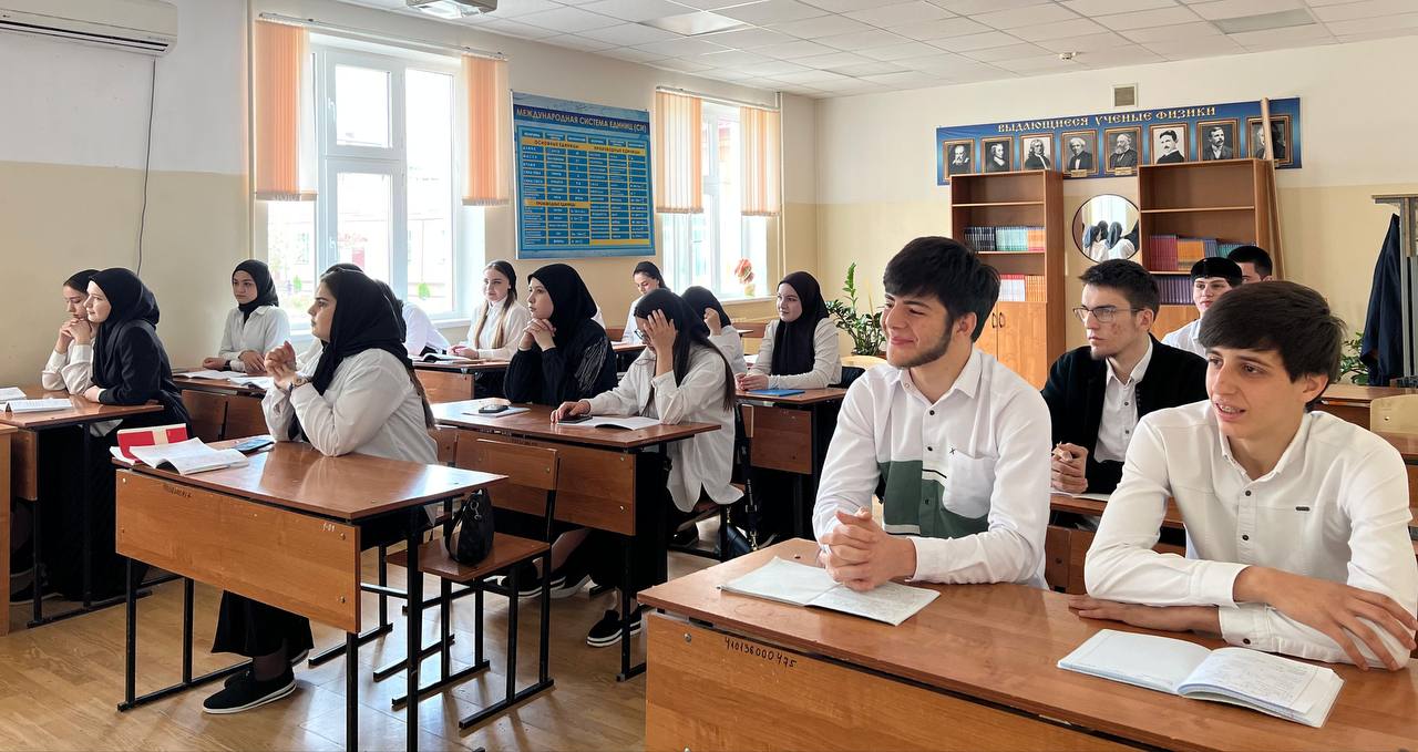 Традиционно, после церемонии поднятия флагов и звучания гимнов Российской Федерации и Чеченской республики, кураторы со студентами разошлись по кабинетам для проведения мероприятий из цикла «Разговоры