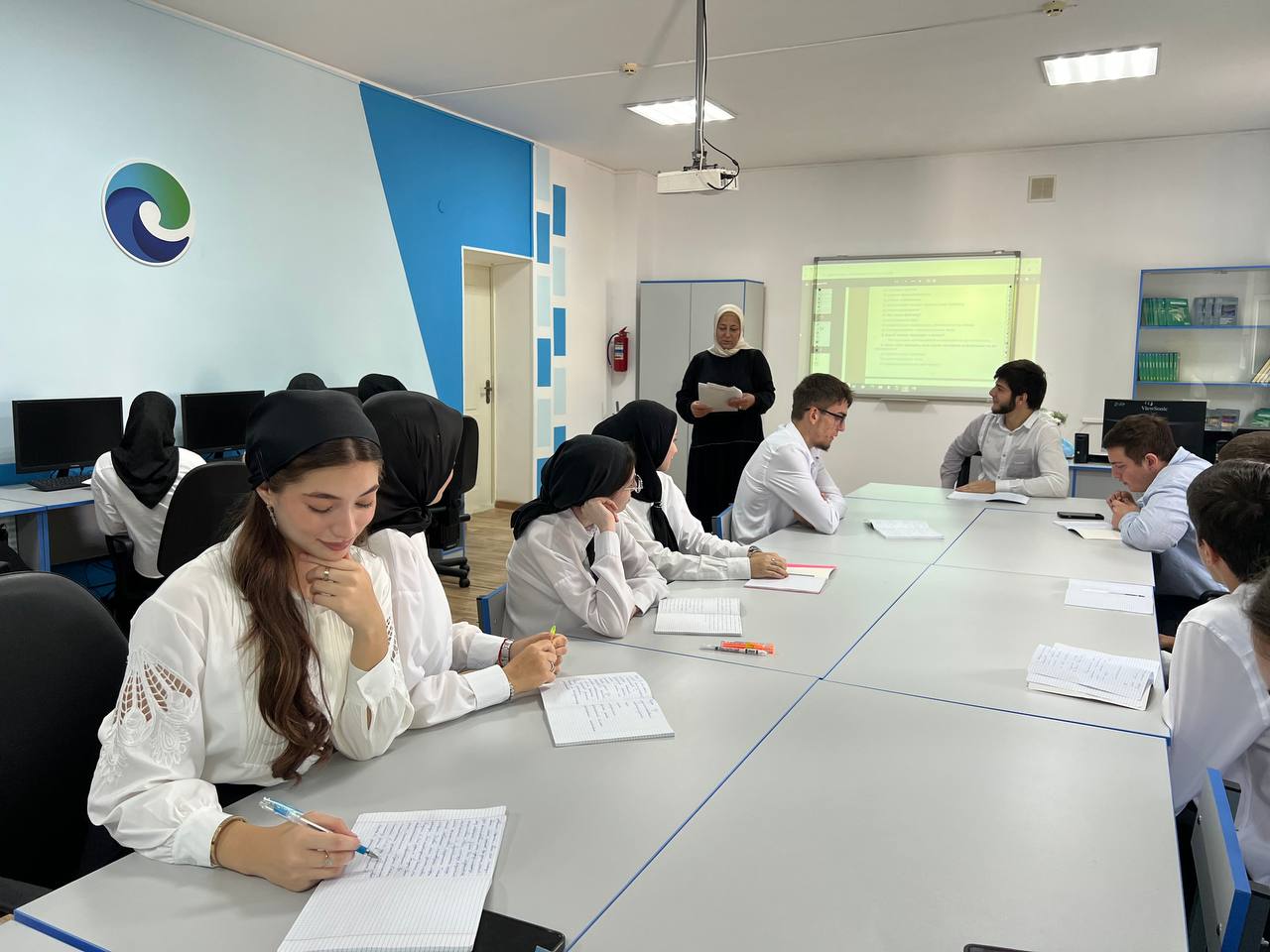 Традиционно, после церемонии поднятия флагов и звучания гимнов Российской Федерации и Чеченской республики, кураторы со студентами разошлись по кабинетам для проведения мероприятий из цикла «Разговоры о важном». Тема сегодняшних разговоров о важном - «120 лет Информационному агентству России ТАСС».