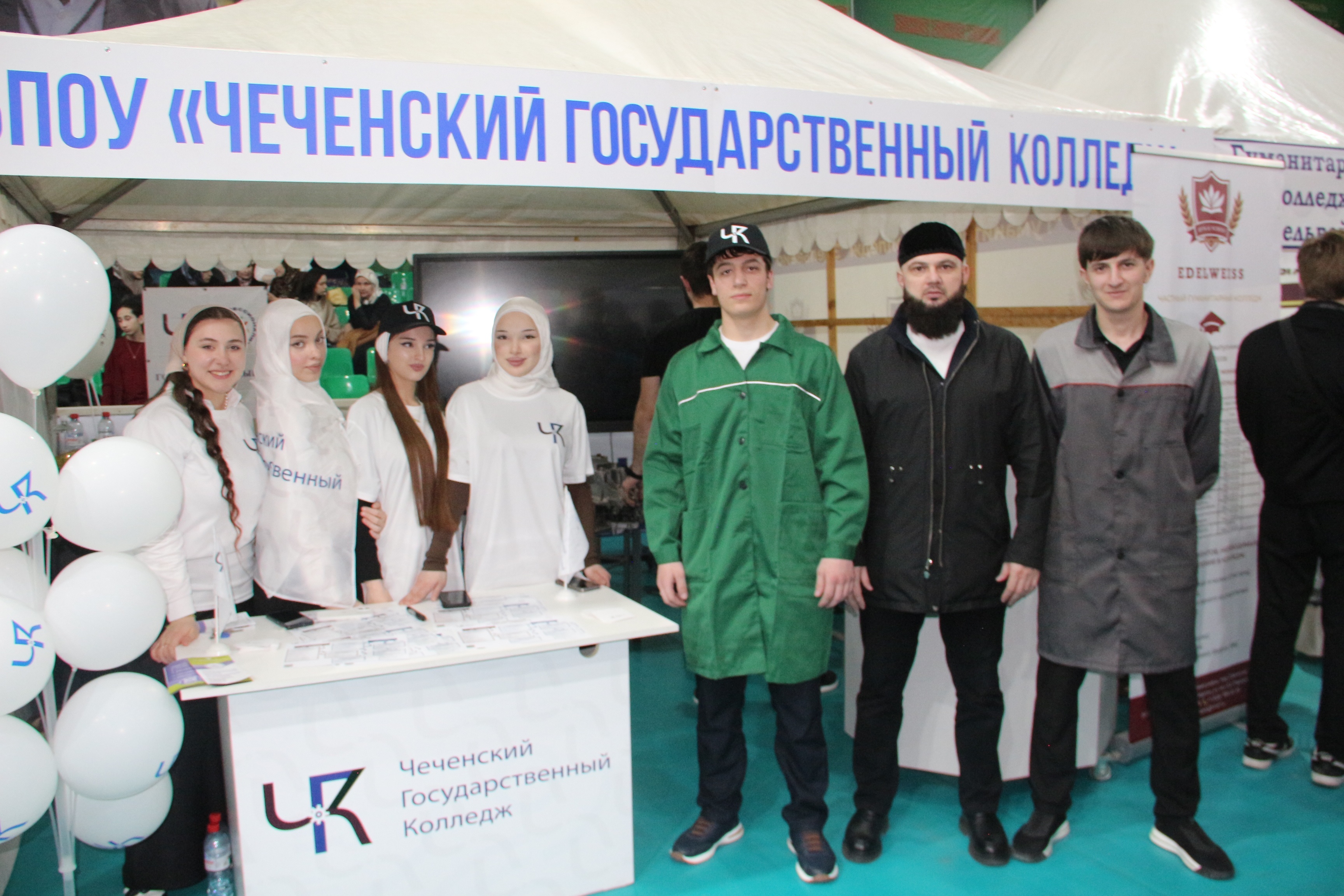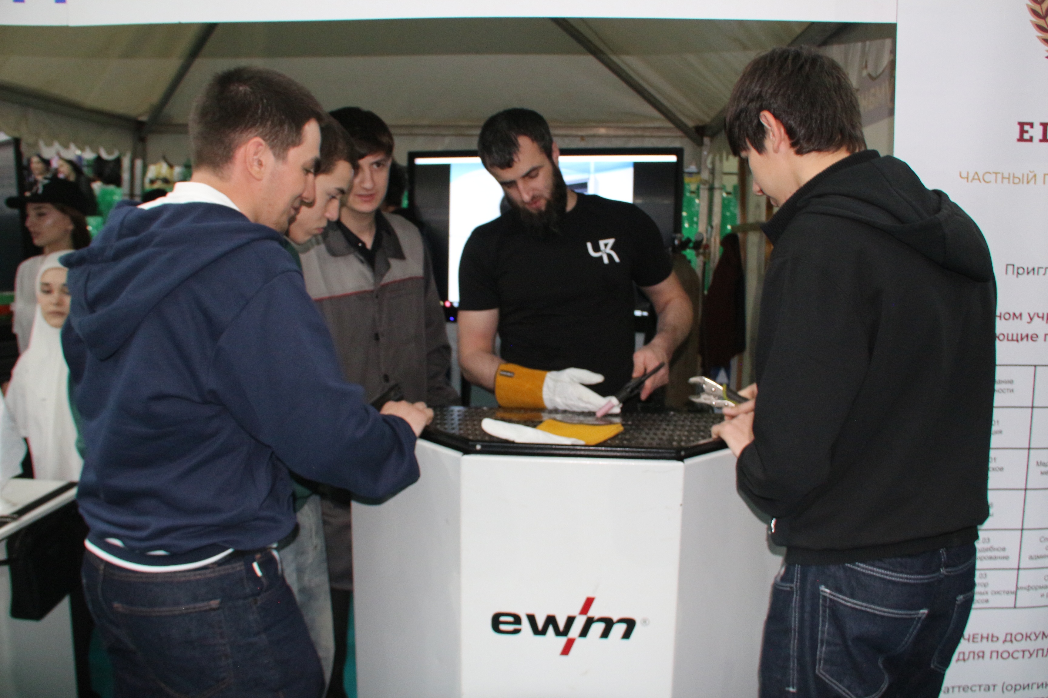 В рамках профориентационной работы, Чеченский государственный колледж провел для посетителей ярмарки мастер-классы по самым востребованным направлениям: Сварщик и Мастер по ремонту и обслуживанию автомобилей. Выпускники колледжа выступили как соискатели вакантных рабочих мест.